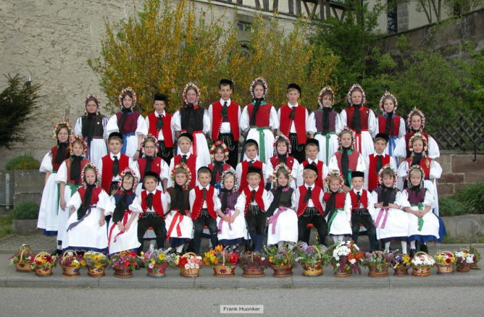 die Buben ein schwarzes Samtkäpple mit Zottel. Ledige Jungs tragen die Zottel links,