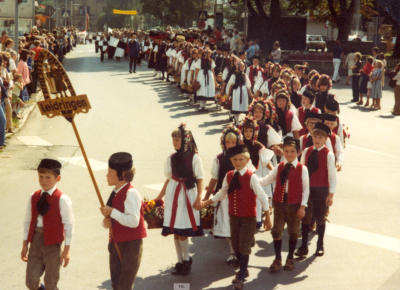 Als Trachtengruppe nehmen wir an Trachtenumzügen teil, bei welchen wir einen